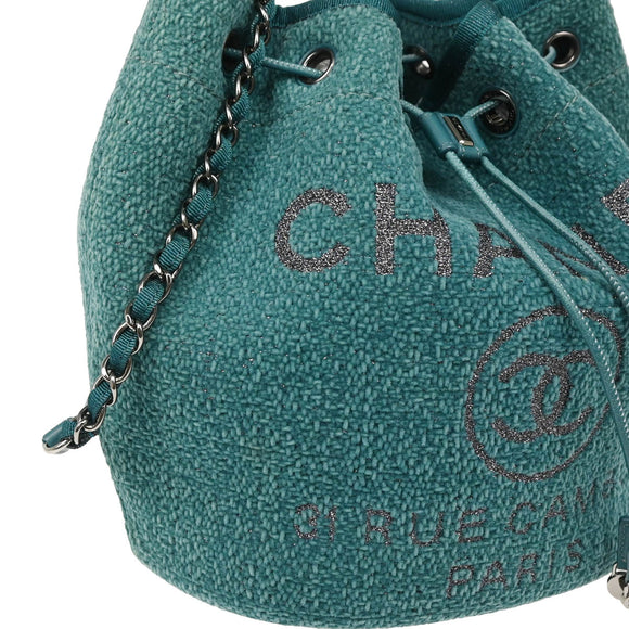 Chanel 2019 Green Fabric Deauville Drawstring Bucket Shoulder Bag
