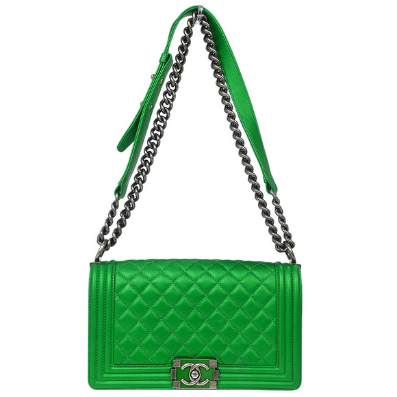 Boy Chanel 2014-2015 Green Lambskin Medium Shoulder Bag