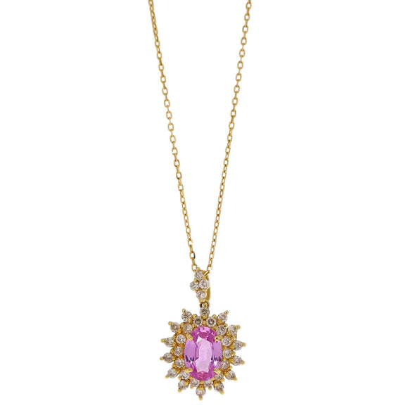 Pendant Necklace 18K Pink Sapphire Diamond Gold