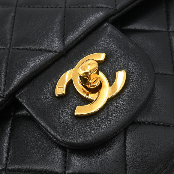 Chanel 1994-1996 Black Lambskin Medium Classic Double Flap Shoulder Bag
