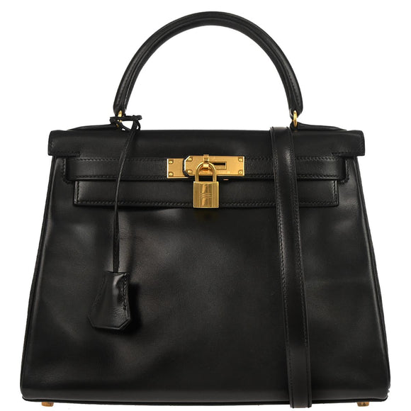 Hermes Black Box Calf Kelly 28 Retourne 2way Shoulder Handbag