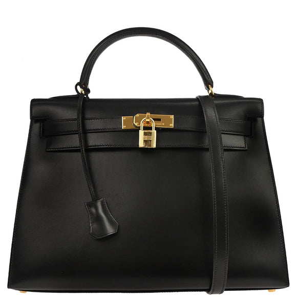 Hermes Black Box Calf Kelly 32 Sellier 2way Shoulder Handbag