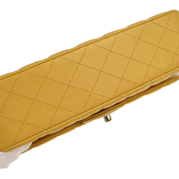 Chanel Yellow Lambskin Medium Classic Double Flap Shoulder Bag