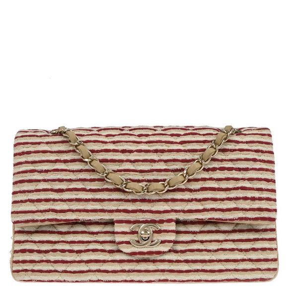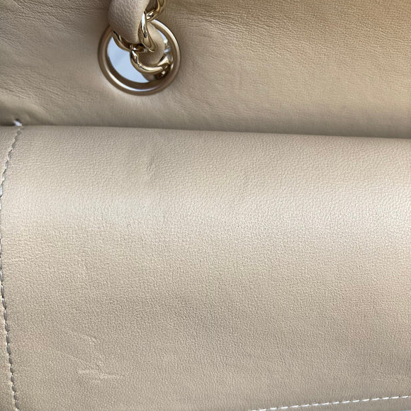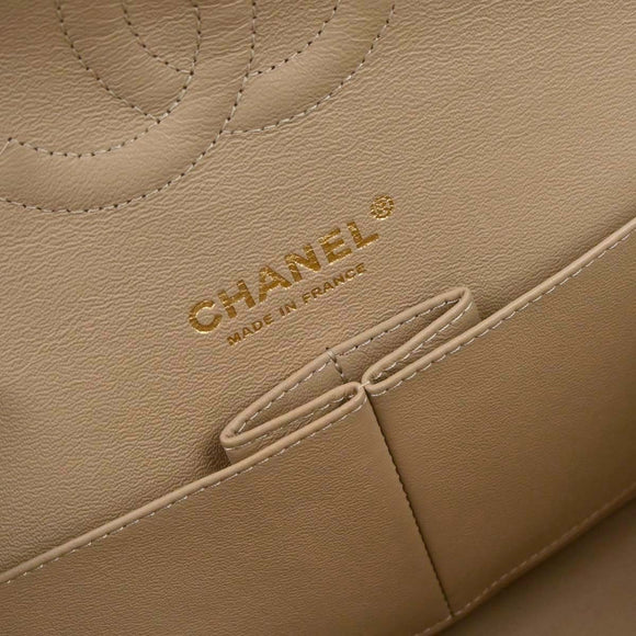 Chanel Beige Canvas Medium Classic Double Flap Shoulder Bag
