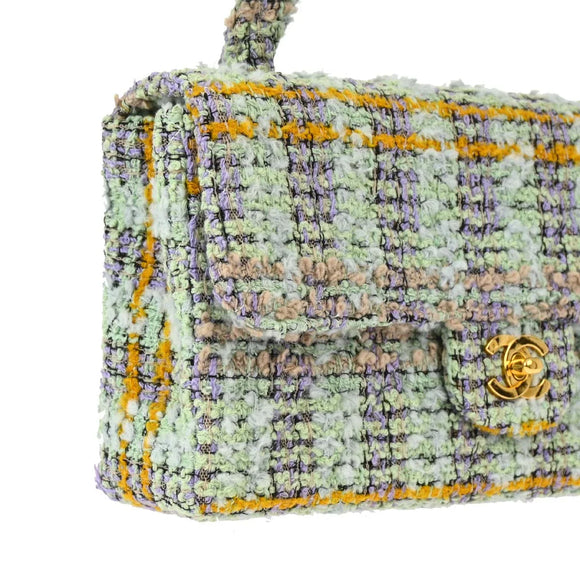 Chanel * 1994-1996 Green Tweed Classic Single Flap 2 in 1 Handbag Set