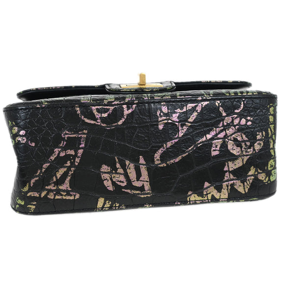 Chanel 2019 Black Embossed Leather Mademoiselle Lock Graffiti Shoulder Bag