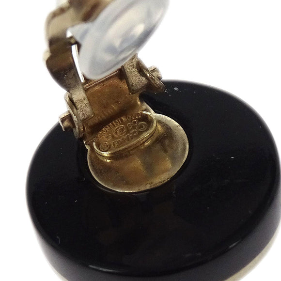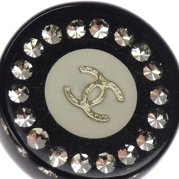 Chanel Button Clip-On Earrings Rhinestone Black 08C