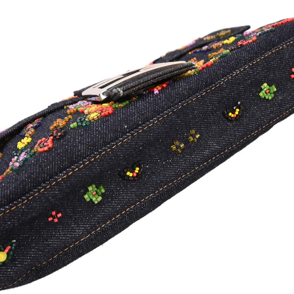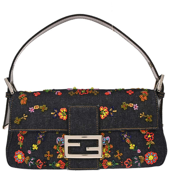 Fendi Navy Denim Beaded Baguette Handbag