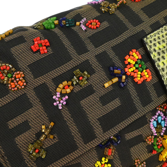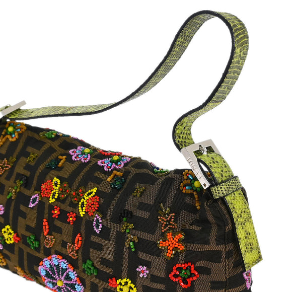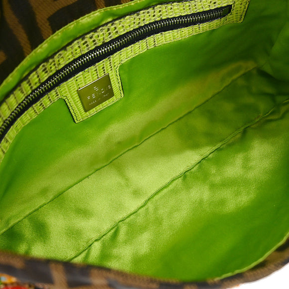Fendi * Brown Lizard Canvas Zucca Baguette Handbag