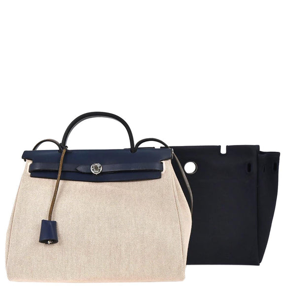 Hermes Beige Navy Toile H Officier Herbag PM 2 in 1 Handbag