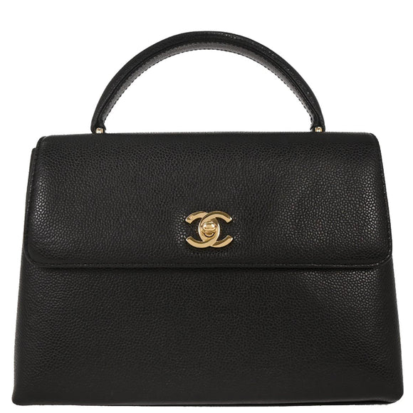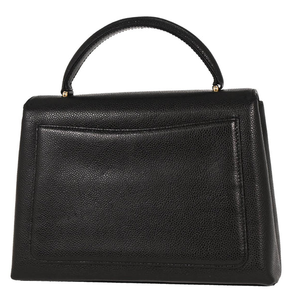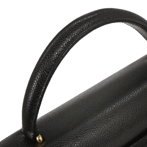 Chanel 1997-1999 Kelly Black Caviar Top Handle Handbag