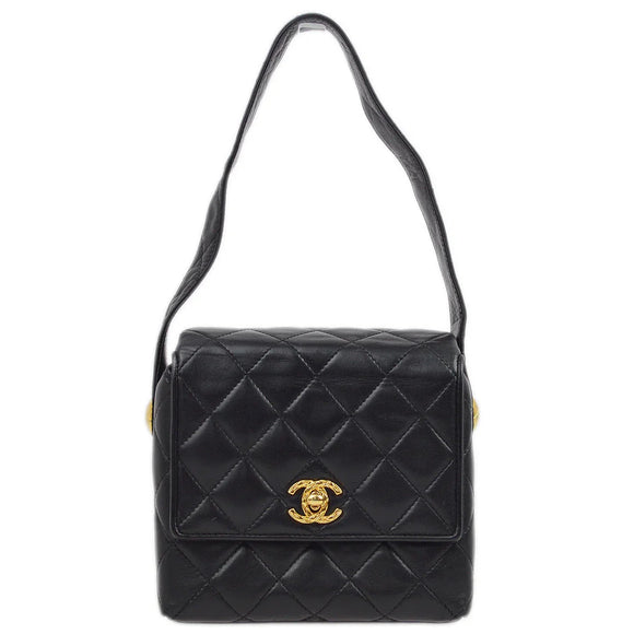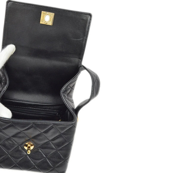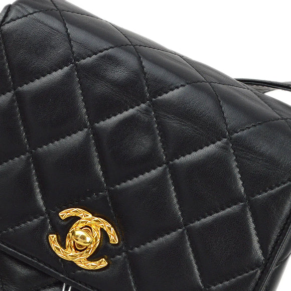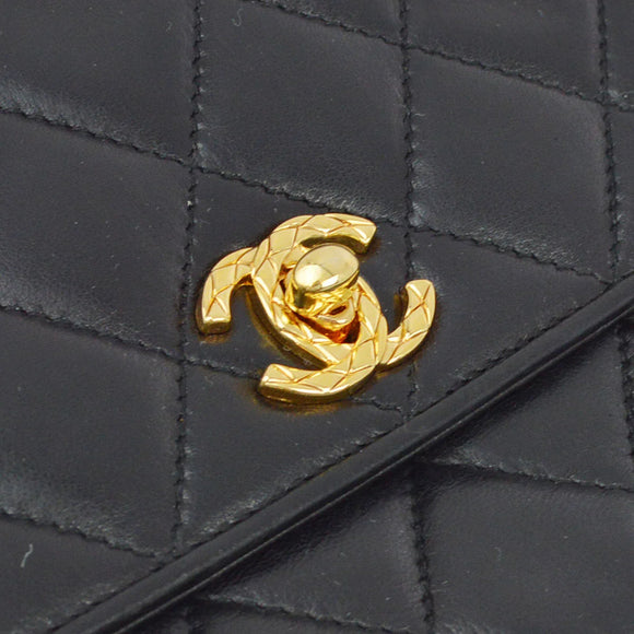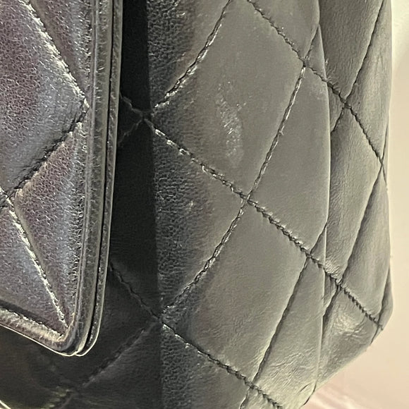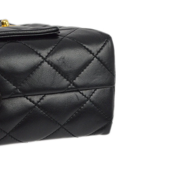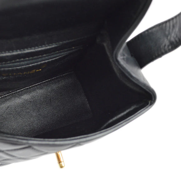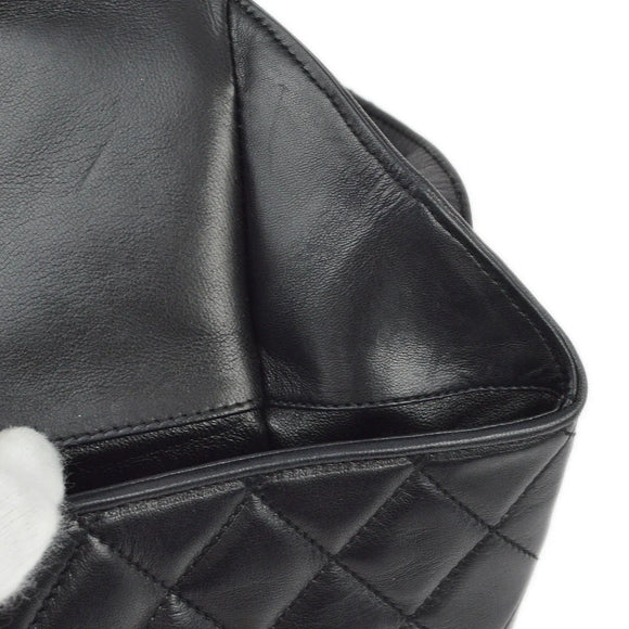 Chanel 1991-1994 Black Lambskin Straight Flap Handbag