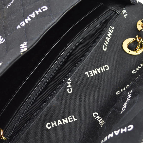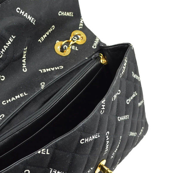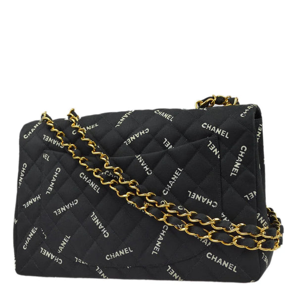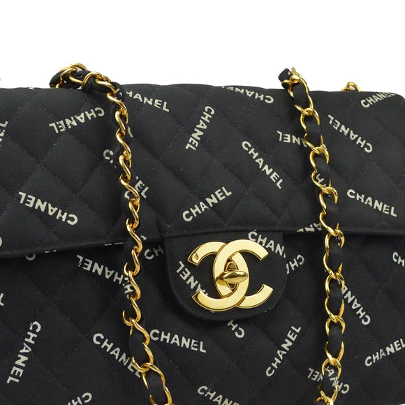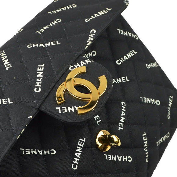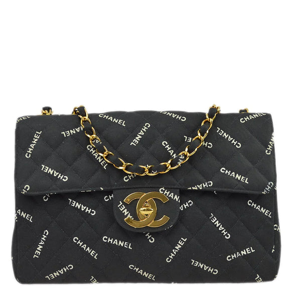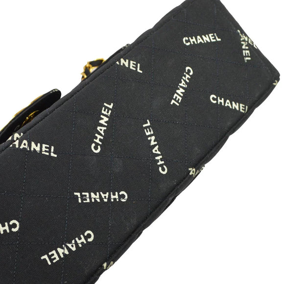 Chanel 1994-1996 Black Canvas Maxi Classic Flap Shoulder Bag