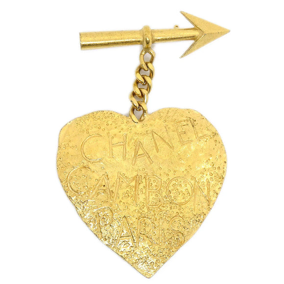 CHANEL 1993 Arrow Heart Brooch Pin Gold