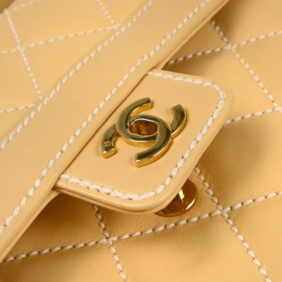Chanel 2004-2005 Beige Calfskin Wild Stitch Handbag