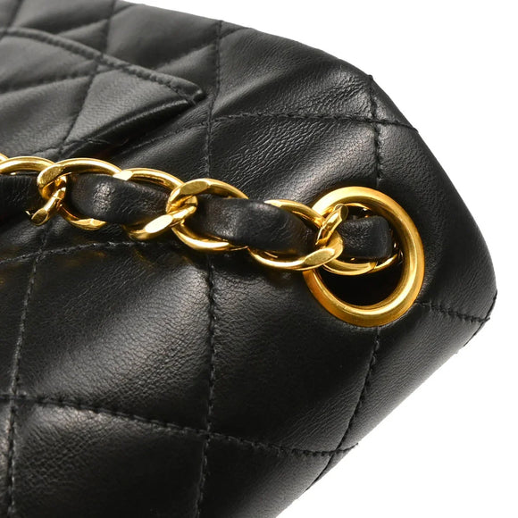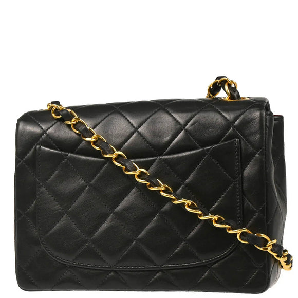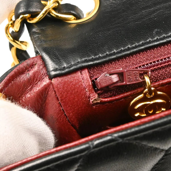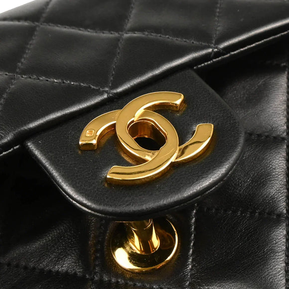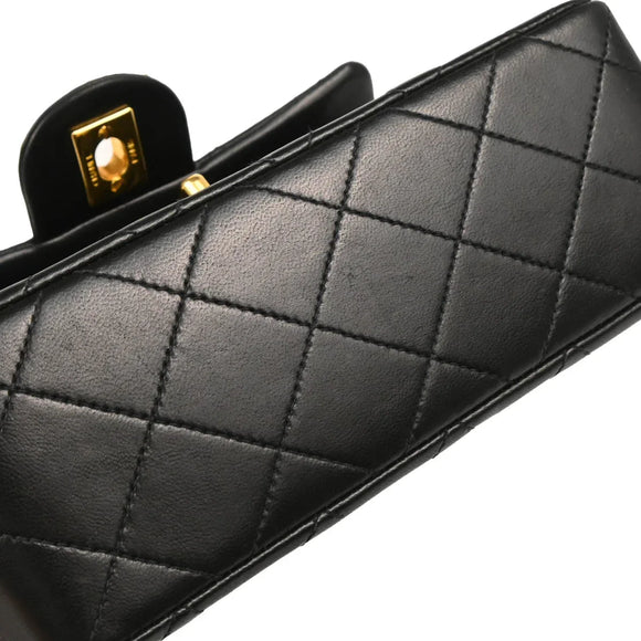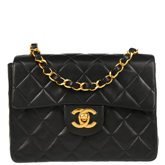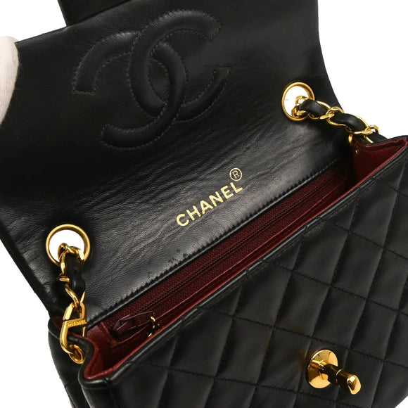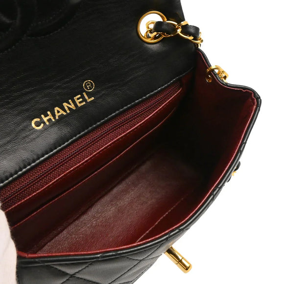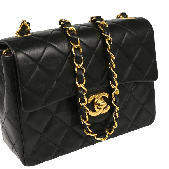 Chanel 1991-1994 Black Lambskin Mini Classic Square Flap Shoulder Bag