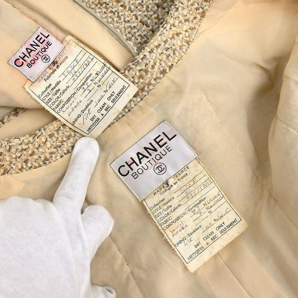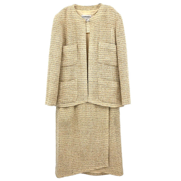 Chanel Setup Suit Jacket Skirt Beige #36
