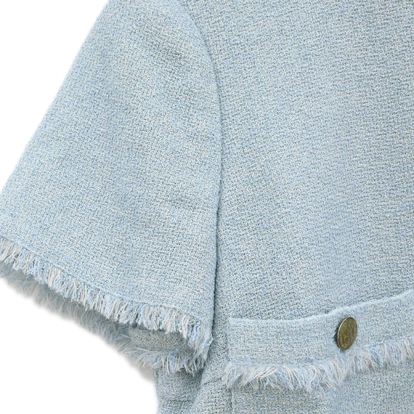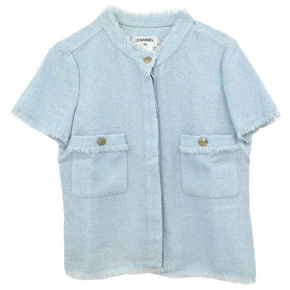 Chanel 2008 Single Breasted Short Sleeve Jacket Light Blue #38