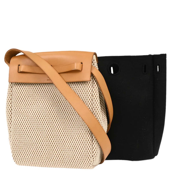Hermes Beige Black Toile GM Officier Herbag TPM 2 in 1 Shoulder Bag