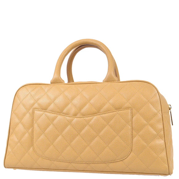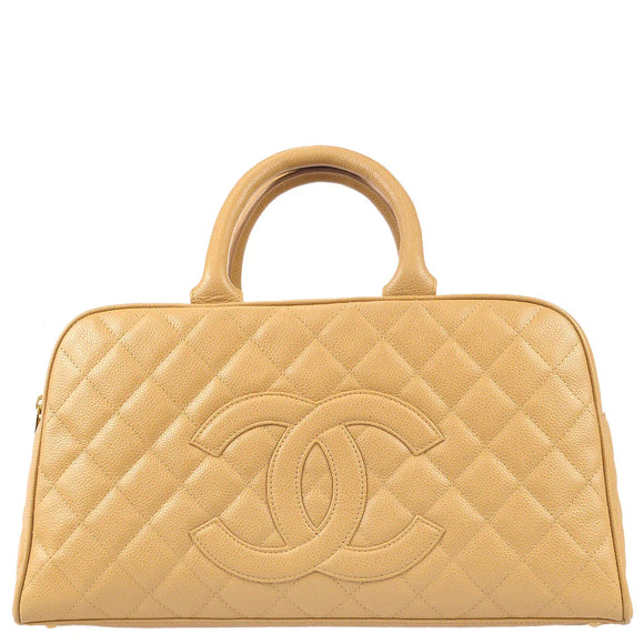 Chanel 2003-2004 Bowling Bag 37 Beige Caviar
