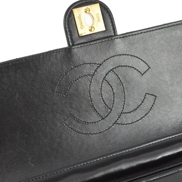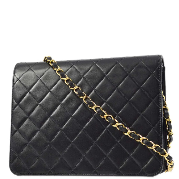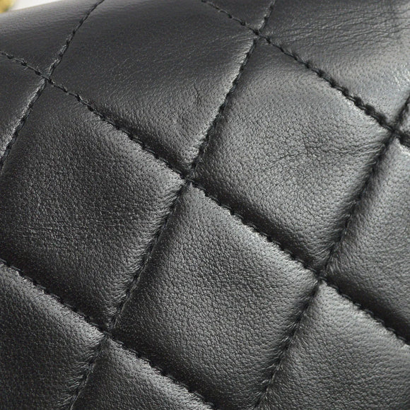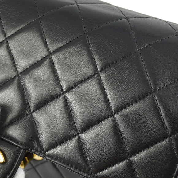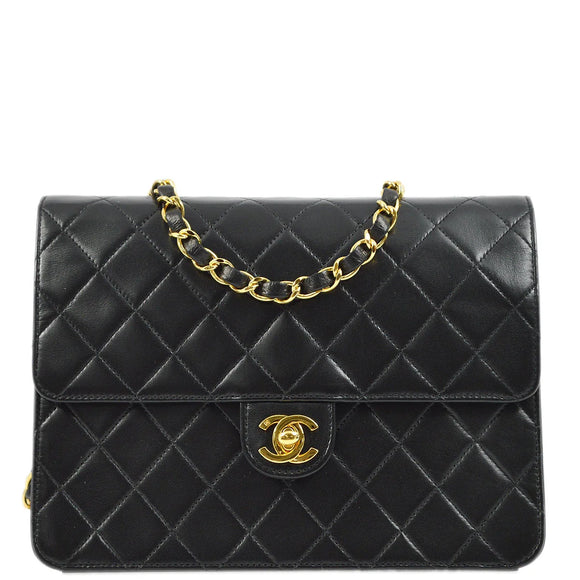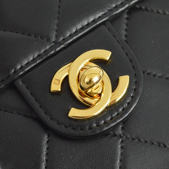 Chanel 2000-2001 Black Lambskin Pushlock Small Half Flap Shoulder Bag