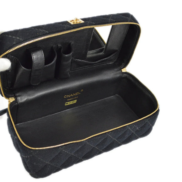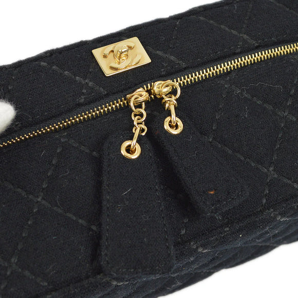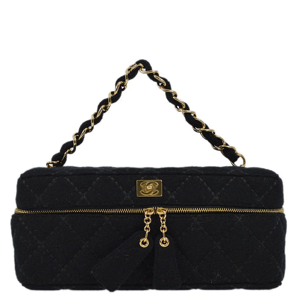 Chanel 2001-2003 Black Wool Wild Stitch Vanity Handbag