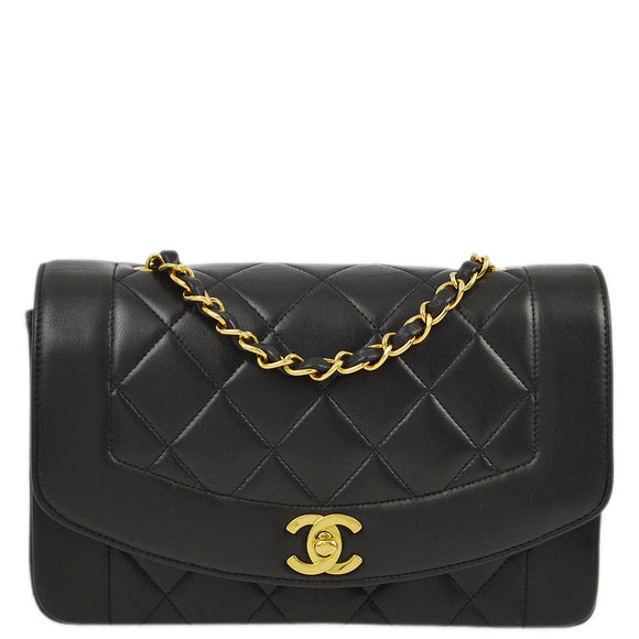 Chanel 1994-1996 Black Lambskin Small Diana Shoulder Bag