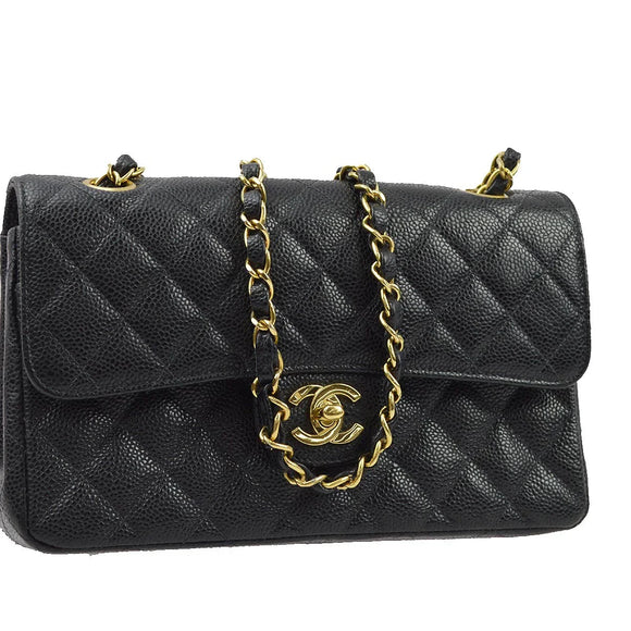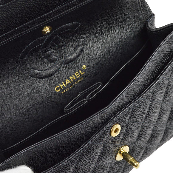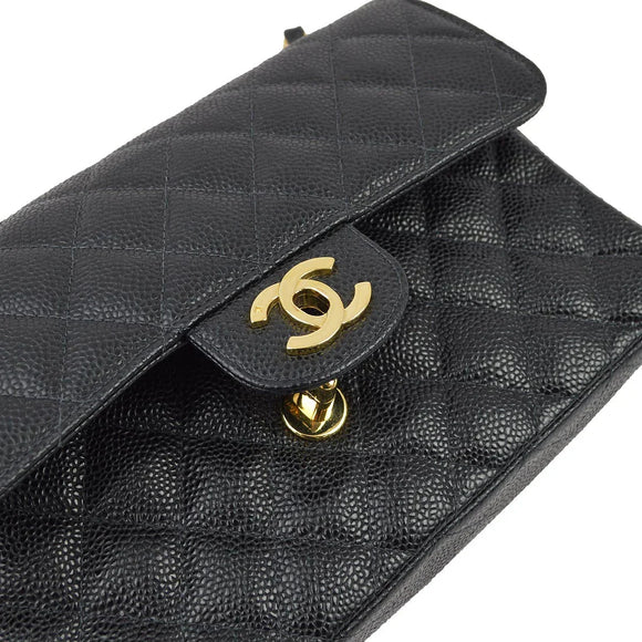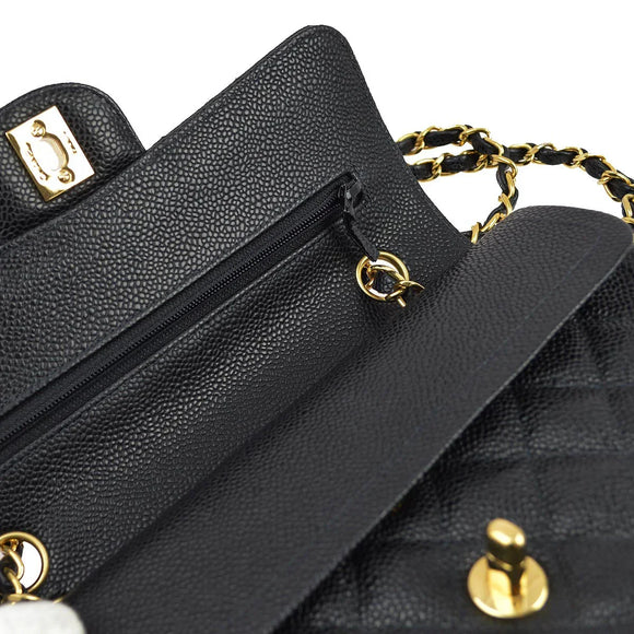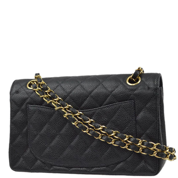 Chanel 2003-2004 Black Caviar Small Classic Double Flap Shoulder Bag