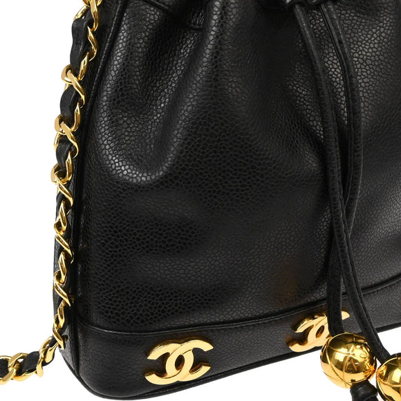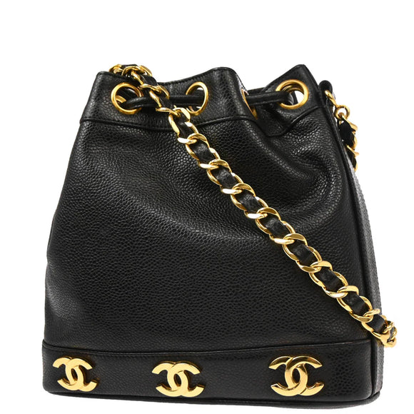Chanel Black Caviar Triple CC Drawstring Shoulder Bag