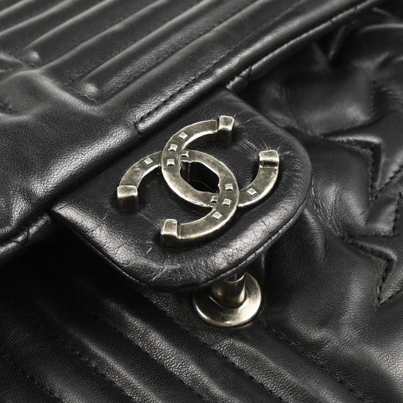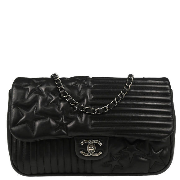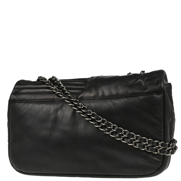 Chanel 2014 Black Lambskin Star Stitch Shoulder Bag