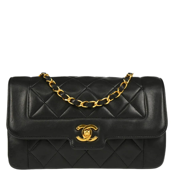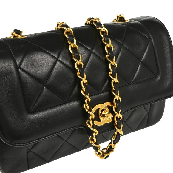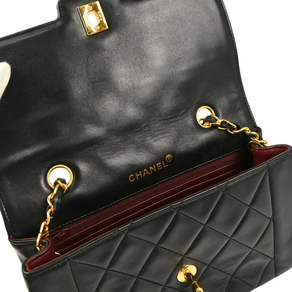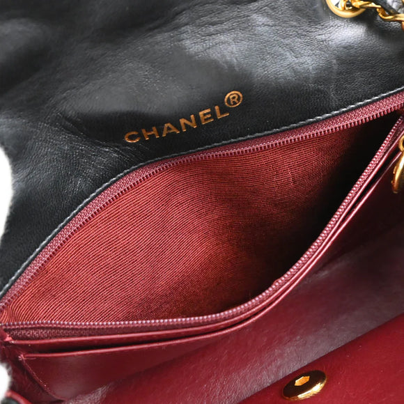 Chanel 1989-1991 Black Lambskin Single Flap Shoulder Bag
