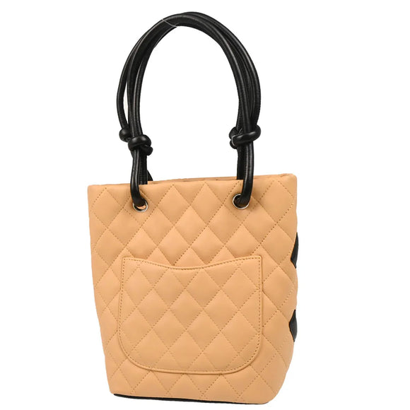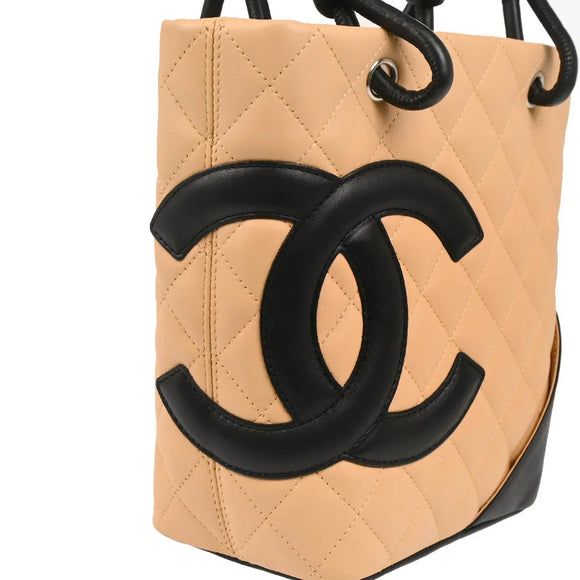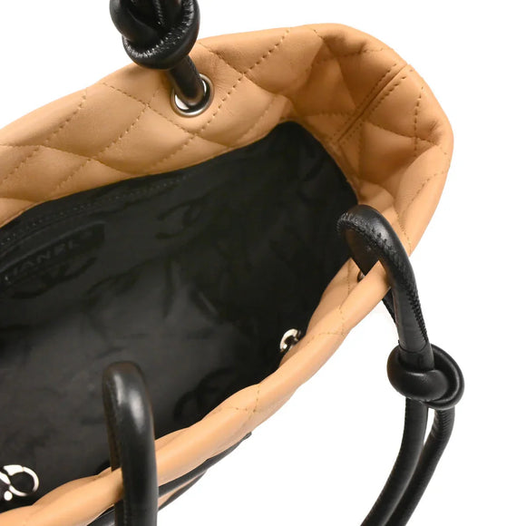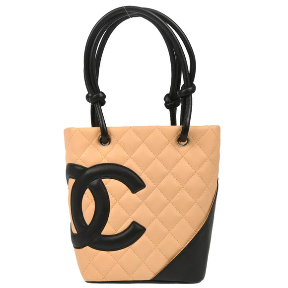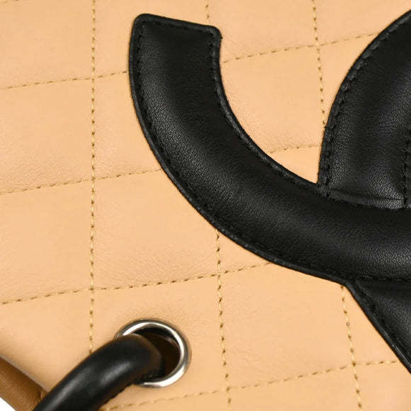 Chanel 2005-2006 Beige Black Calfskin Cambon Ligne Tote Handbag