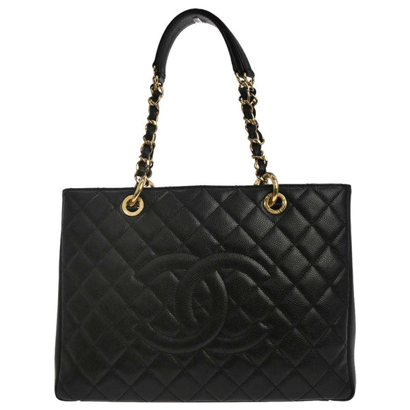 Chanel Black Caviar Skin Grand Shopping Tote GST Chain Handbag