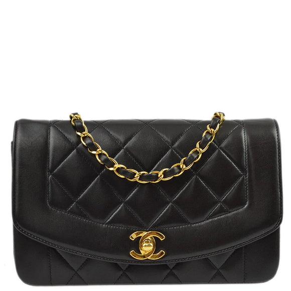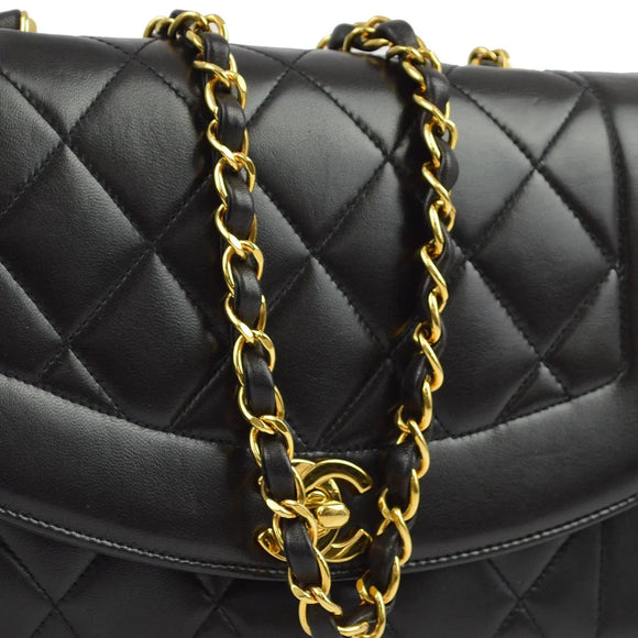 Chanel 1994-1996 Black Lambskin Small Diana Shoulder Bag