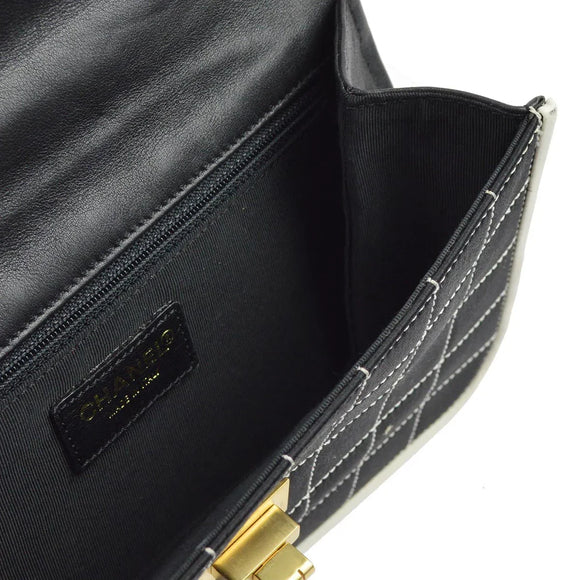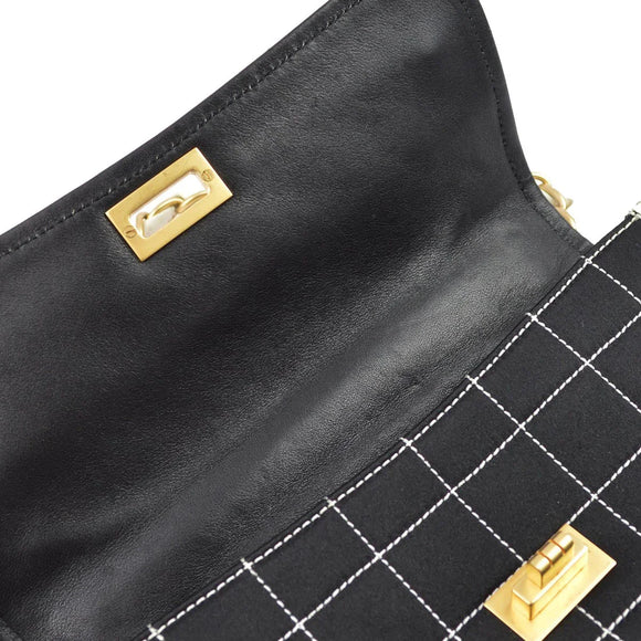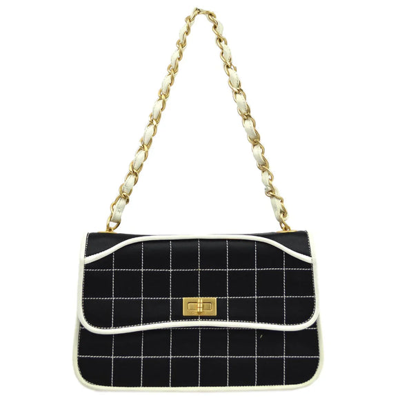 Chanel 2000-2001 Black Satin Mademoiselle Lock Chain Handbag