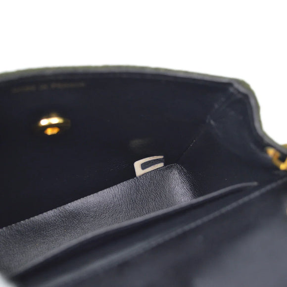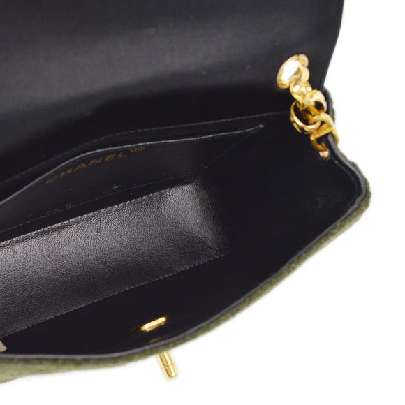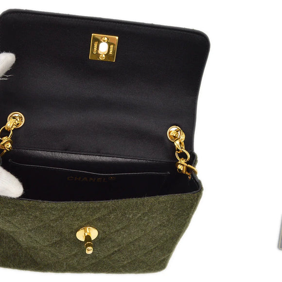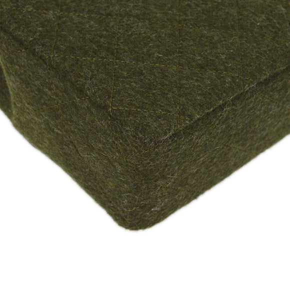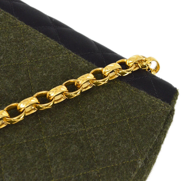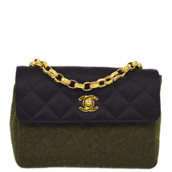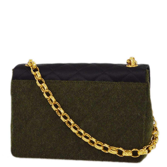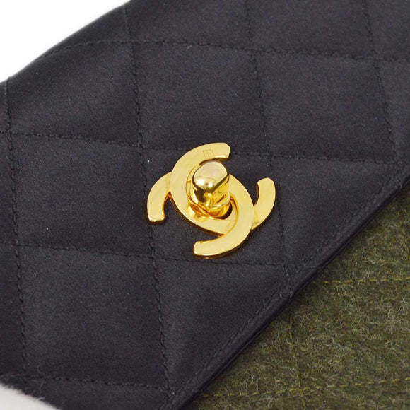 Chanel 1989-1991 Black Green Satin Felt Straight Flap Shoulder Bag