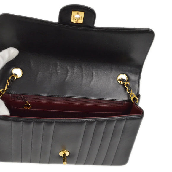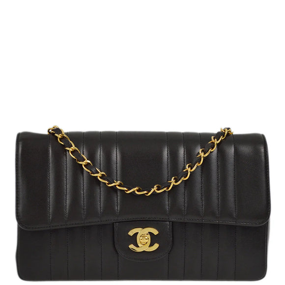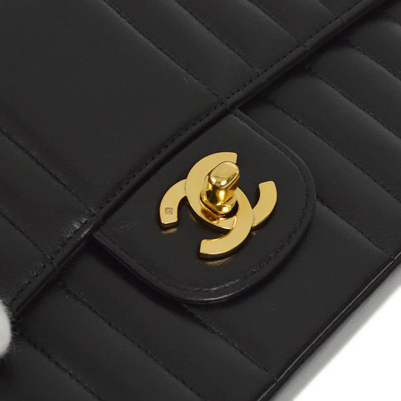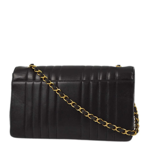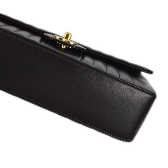 Chanel 1991-1994 Black Lambskin Mademoiselle Single Flap Shoulder Bag