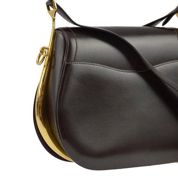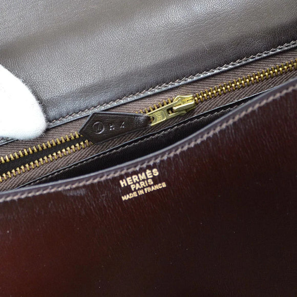 Hermes 1983 Brown Box Calf Passe Guide Shoulder Bag