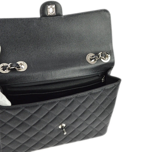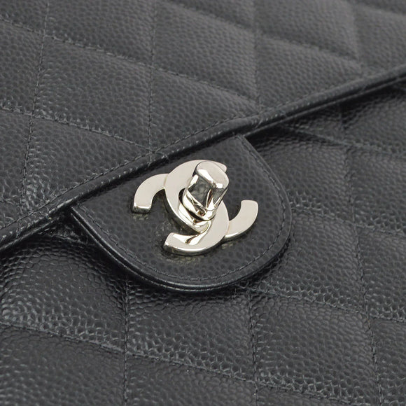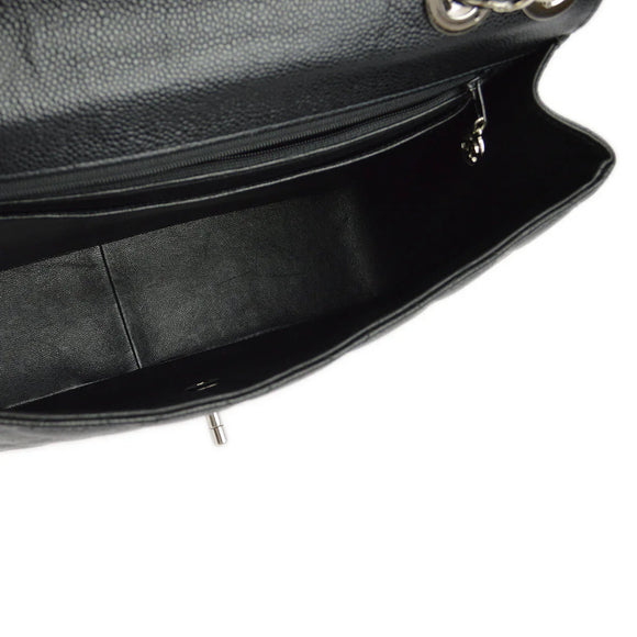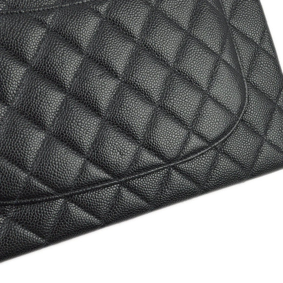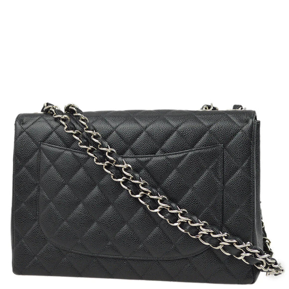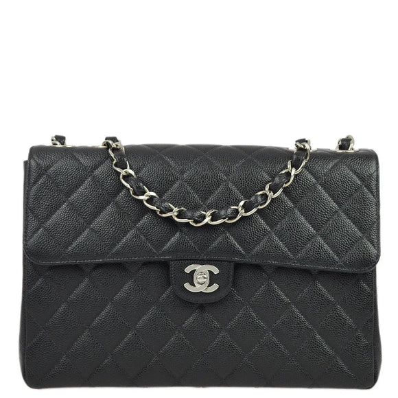 Chanel 2000-2001 Black Caviar Jumbo Classic Flap Shoulder Bag