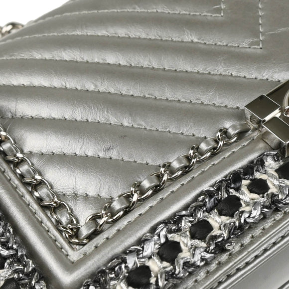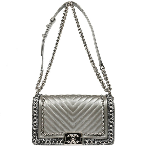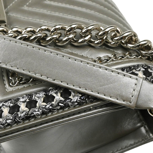 Boy Chanel 2017-2018 Silver Calfskin Medium Chevron Shoulder Bag