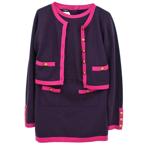 Chanel 1994 Setup Suit Cardigan Top Skirt Purple #42