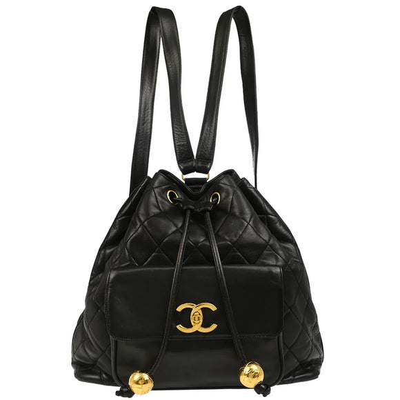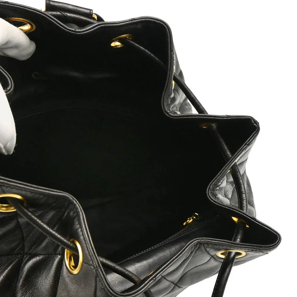 Chanel Black Lambskin Drawstring Backpack