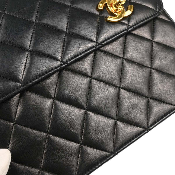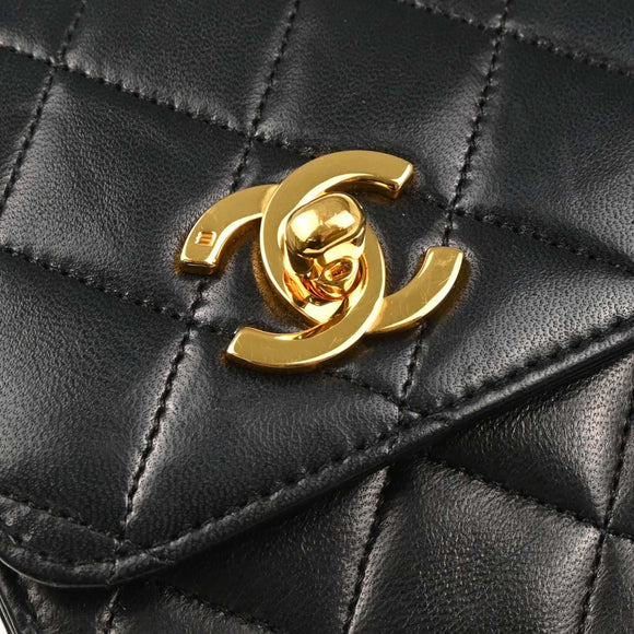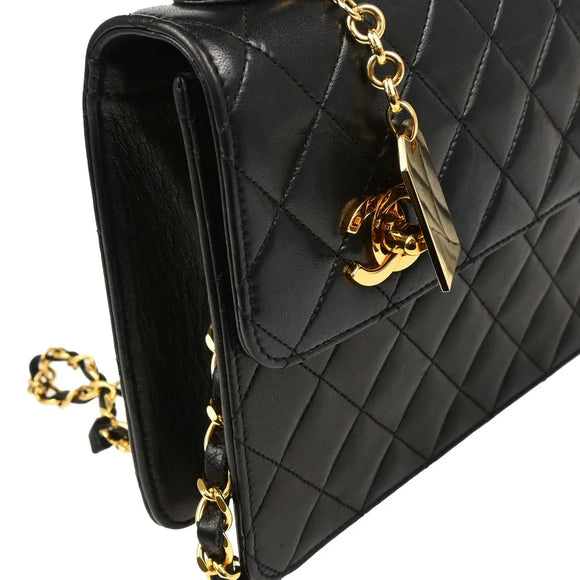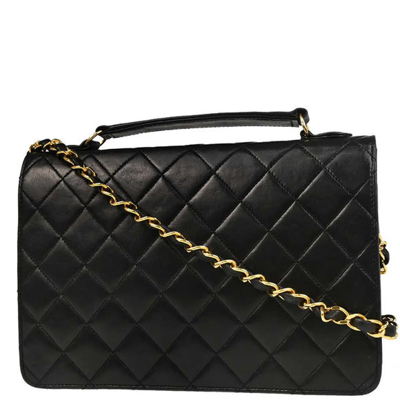 Chanel 1989-1991 Black Lambskin 2way Shoulder Handbag