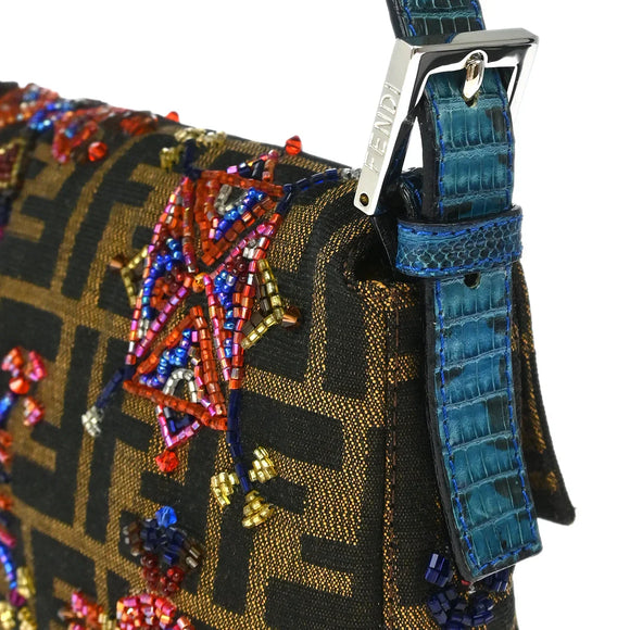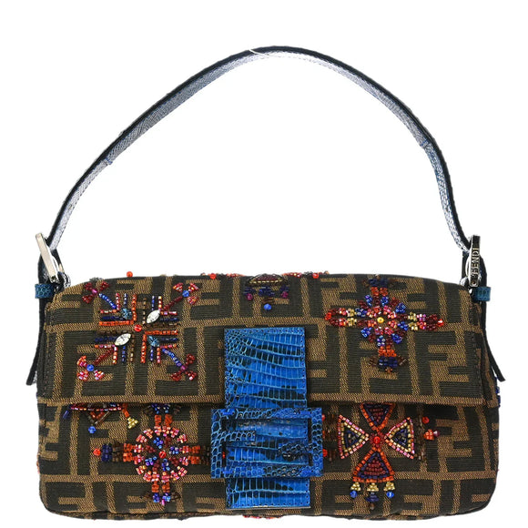 Fendi* 2000 Brown Crocodile Zucca Baguette Handbag