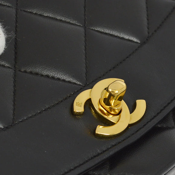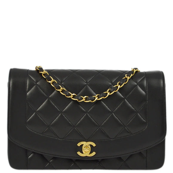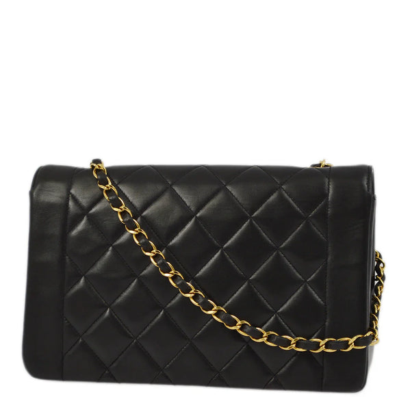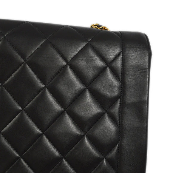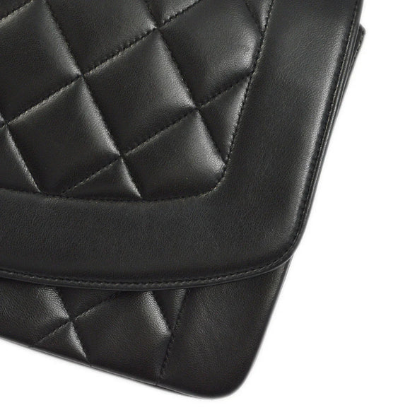 Chanel 1991-1994 Black Lambskin Medium Diana Shoulder Bag