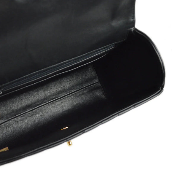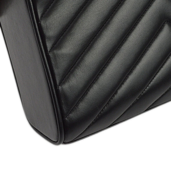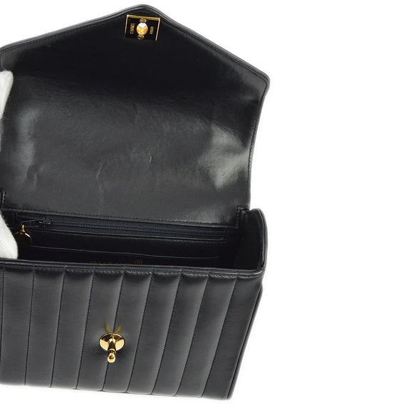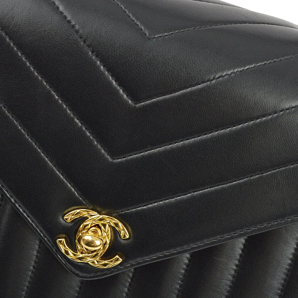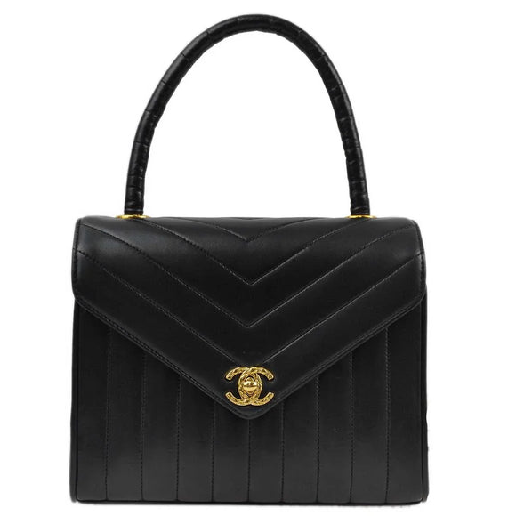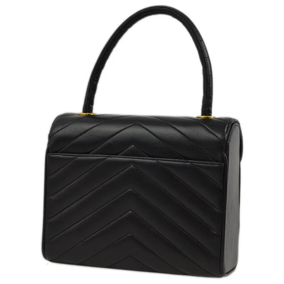 Chanel 1991-1994 Black Lambskin Mademoiselle Chevron Handbag