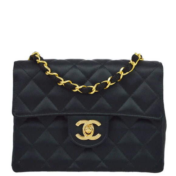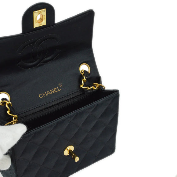 Chanel 2006-2008 Black Satin Mini Classic Square Flap Shoulder Bag 17