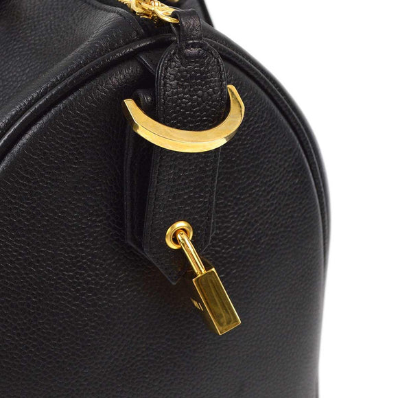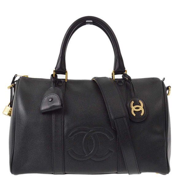 Chanel 1997-1999 Black Caviar 2way Duffle Shoulder Handbag