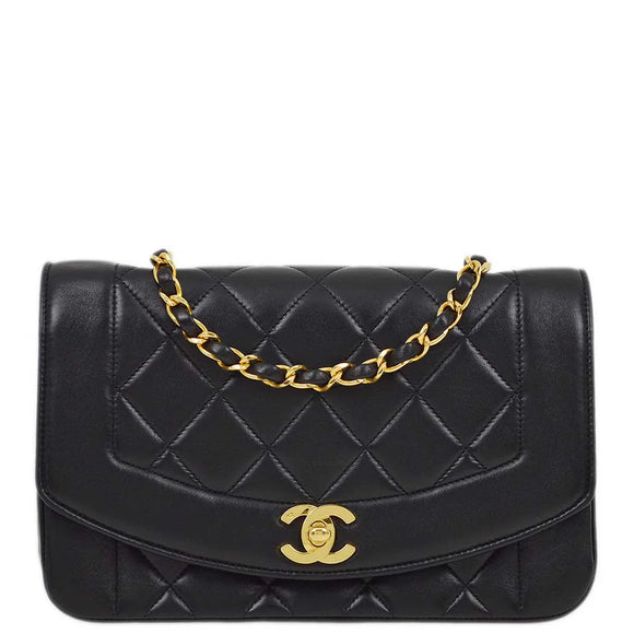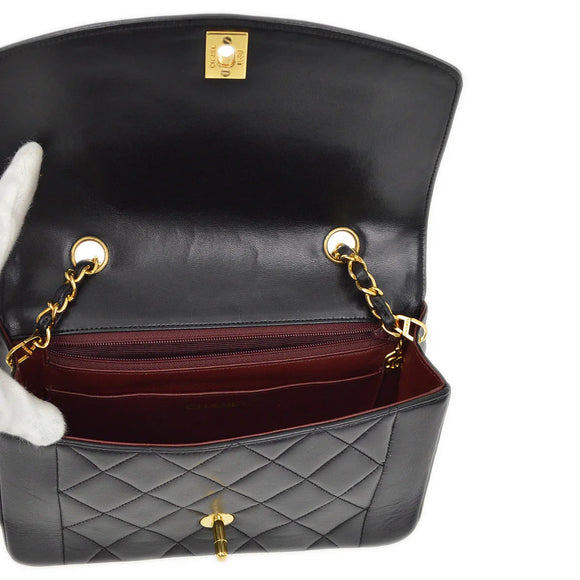Chanel 1996-1997 Black Lambskin Small Diana Shoulder Bag