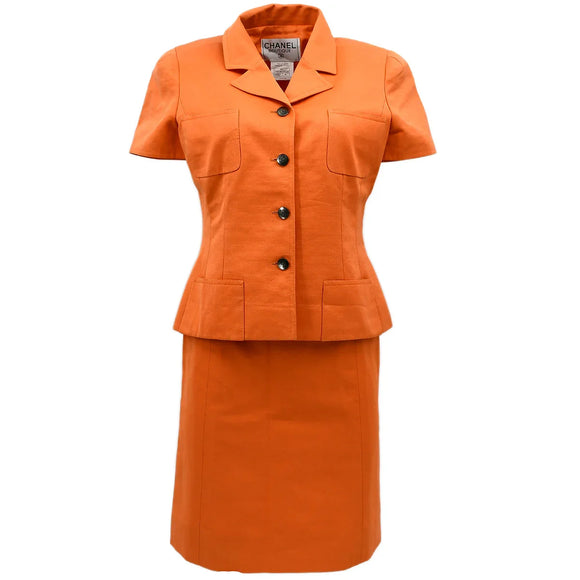 Chanel Setup Suit Jacket Skirt Orange 97C #40